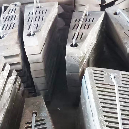 高錳鋼襯板含錳10%~15%,碳含量一般為0.90%~1.50%,大部分在1.0%以上。它的化學成分為(%):C 0.90~1.50,Mn 10.0~15.0,Si 0.30~1.0,S ≤0.05,P ≤0.10。其特點包括組織晶粒細小、硬度及韌性較高、耐磨性能明顯提高,在固定磨料磨損條件下,其耐磨性是傳統Mn13的1.25倍以上,在沖擊功為2.0J的沖擊磨料磨損條件下,其抗沖擊磨料磨損性能是傳統高錳鋼的1.4倍。